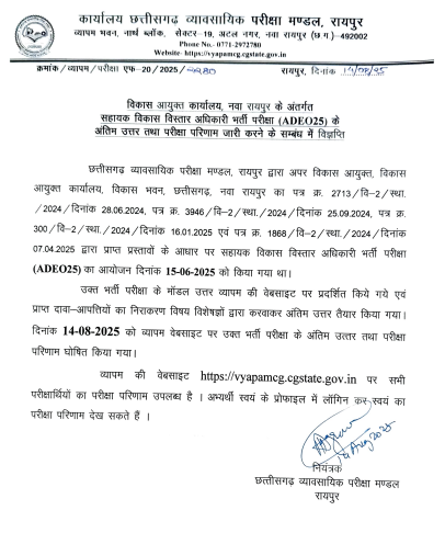 ADEO25 भर्ती परीक्षा – उत्तर कुंजी एवं परिणाम विज्ञप्ति